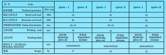 Hydraulic chain cutter designed is manufactured by GIT was deployed to cut the chain in 22-48mm.It invloved the up to date technology home and abroad and classified into two types (Type 1 and Type 11)accroding to the work fluid .The whole set is an assembly of hydraulic chain cutter,hand oil pump (oil pump station),reversing supercharger and high pressure oil hose with the work fluid either hydraulic press oil or emulsifiec mixture.