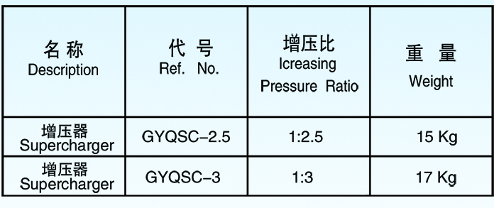 增壓器為液壓切鏈器在采用液壓泵站切割鏈條時(shí)的加壓工具,當(dāng)系統(tǒng)壓力在切割鏈條時(shí)衰減到22巴以下時(shí)且切割∅48mm鏈條時(shí)宜選用3倍增壓的增壓器。